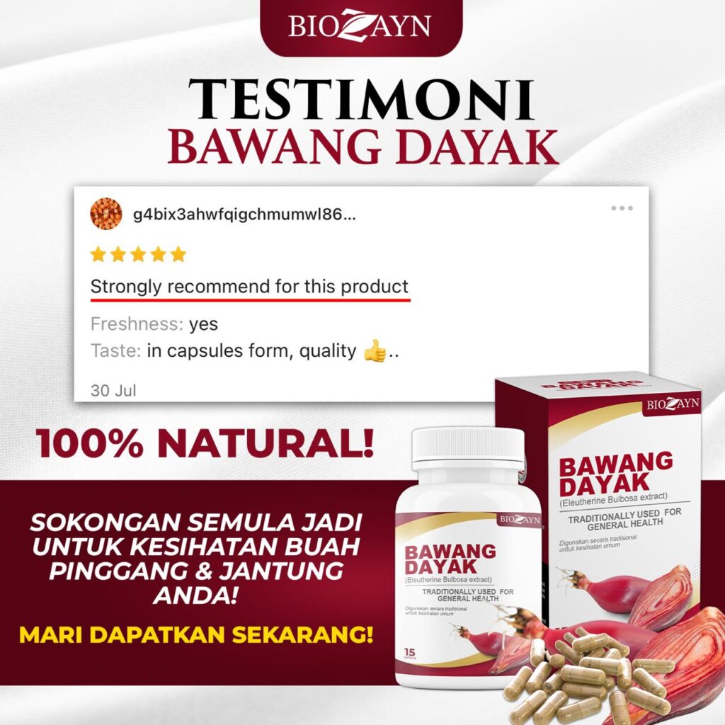 This product is not intended to diagnose, treat, cure, or prevent any disease. Testimonials found this website and are unverified results that have been forwarded to us by users of the Bawang Dayak, and may not reflect the typical purchaser’s experience, may not apply to the average person and are not intended to represent or guarantee that anyone will achieve the same or similar results.